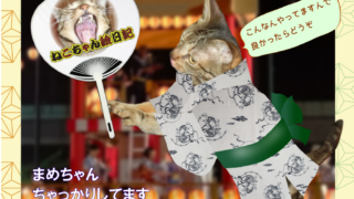 盆踊りに潜入してうちわ配っておいでっておかあさんが言ったにゃ!